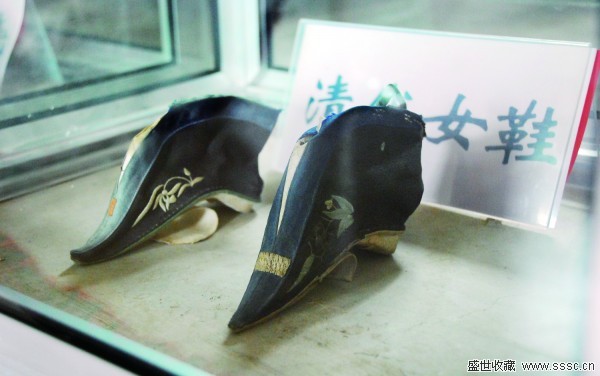 曾被老鼠拖进洞的绣花鞋,如今陈列在玻璃柜子里 。
