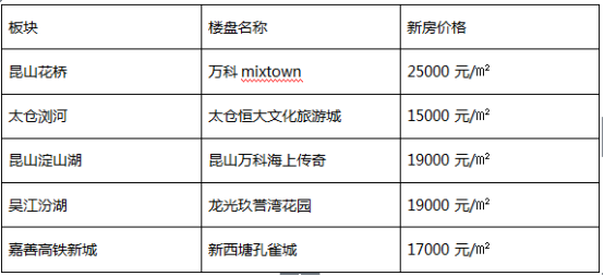 新房价格优势:太仓浏河>嘉善高铁新城>昆山淀山湖>吴江汾湖>昆山花桥